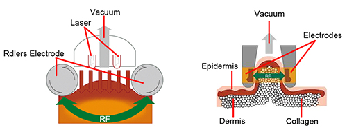 1. Bi-polar RF ve kızılötesi, Mavi ve Yeşil enerji ile birlikte; mekanik dış otomatik makaralarla koordine edilen vakum emme;